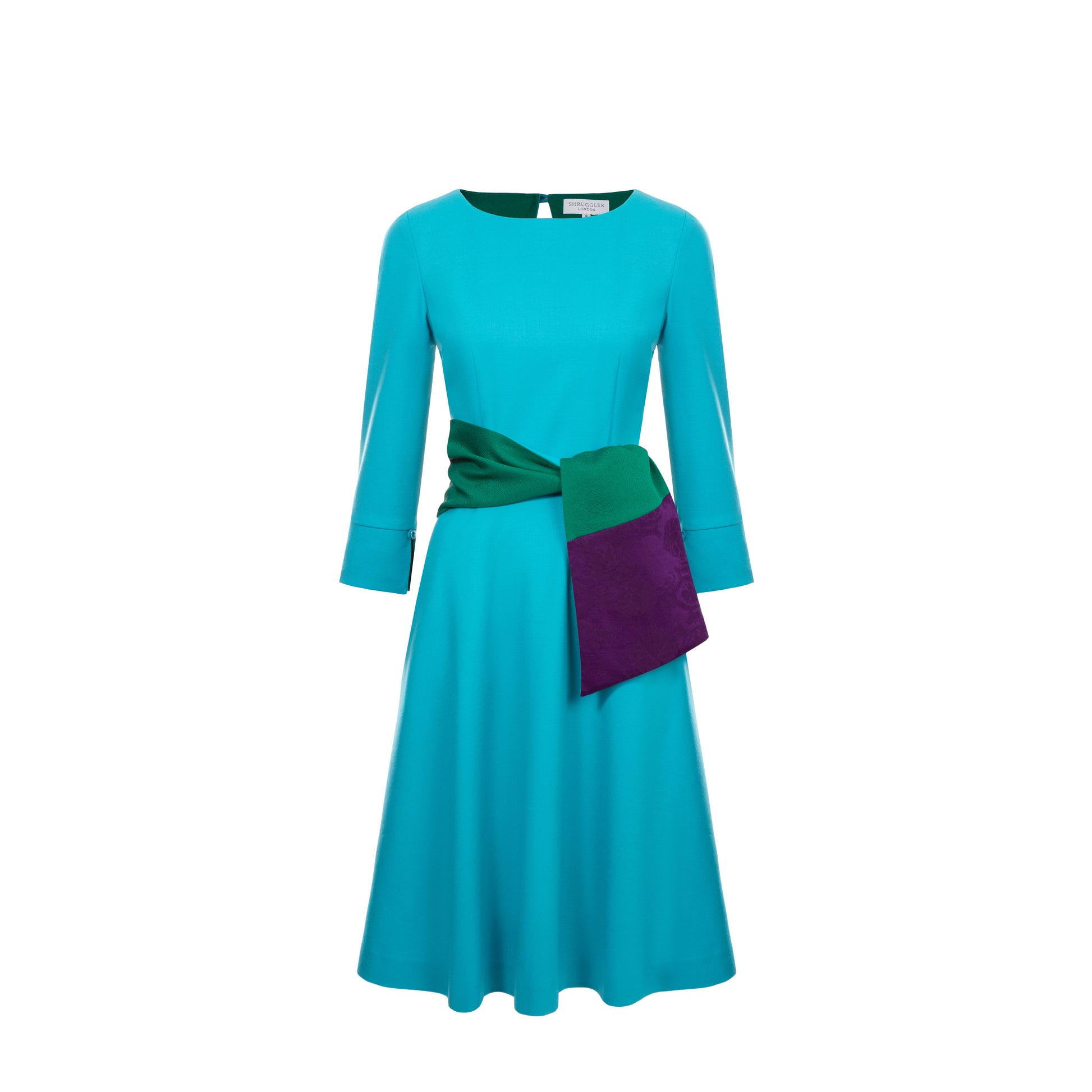 Each dress comes with a handmade and completely unique belt, which can double as a scarf. We have spent time collecting gorgeous vintage Japanese kimono silk, combining shapes and colours with each shade of wool crepe. On one side is wool crepe matching the dress colour, and on the other, two complimentary silks. We love the way it can change the whole look of an outfit. There are so many options and look forward to seeing how you style yours!