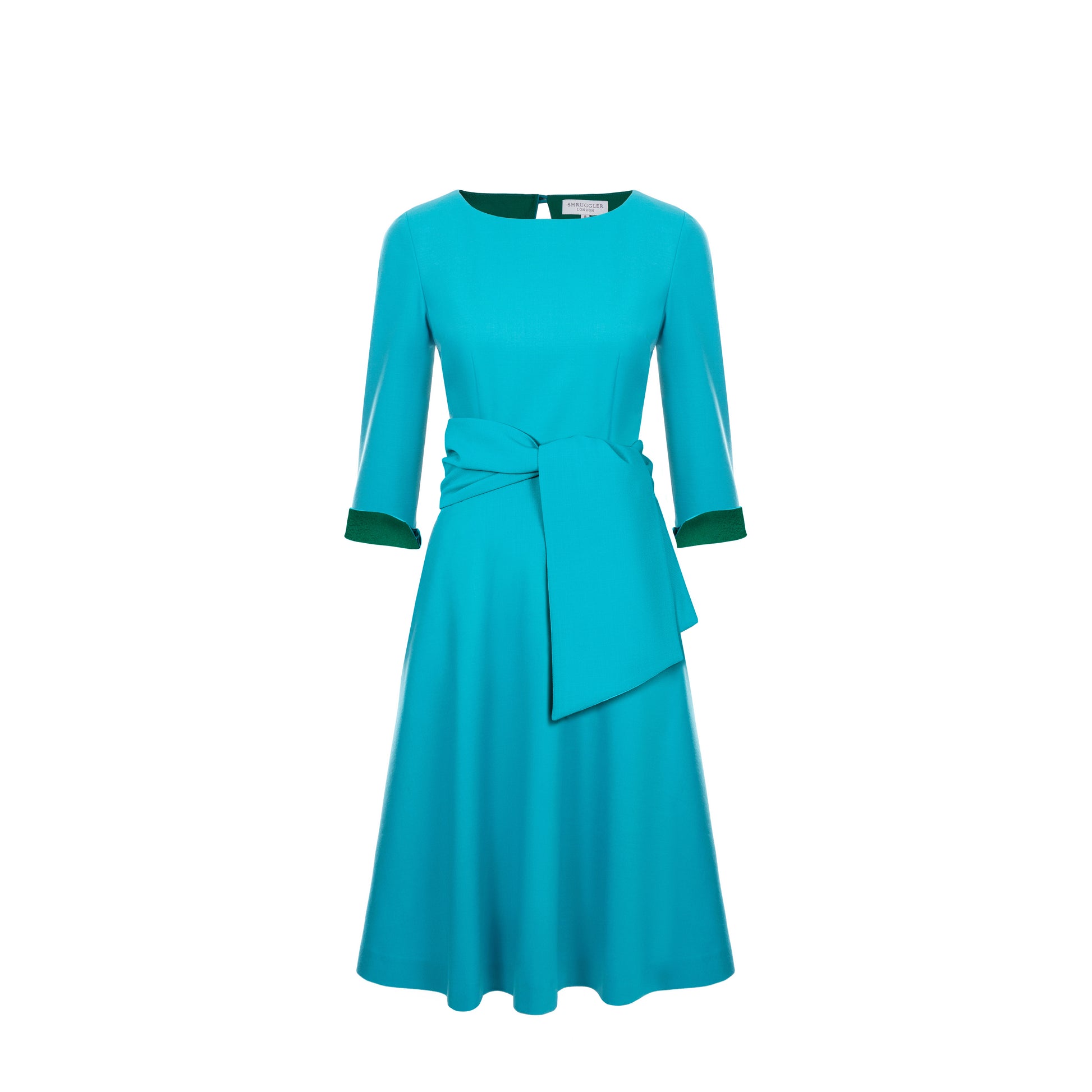 Featuring flattering three quarter length sleeves with tulip shaped cuffs, each with a vintage glass button on a loop fastening. The reverse side of each cuff is finished in contrasting Kimono silk. Wear it turned up showing off the contrast, or down - your choice. The bias cut at the front allows the skirt to fall and skim in all the right places the 'Audrey' is fully lined through the bodice, with a back zip, key hole, and button fastening. And of course it has pockets!!