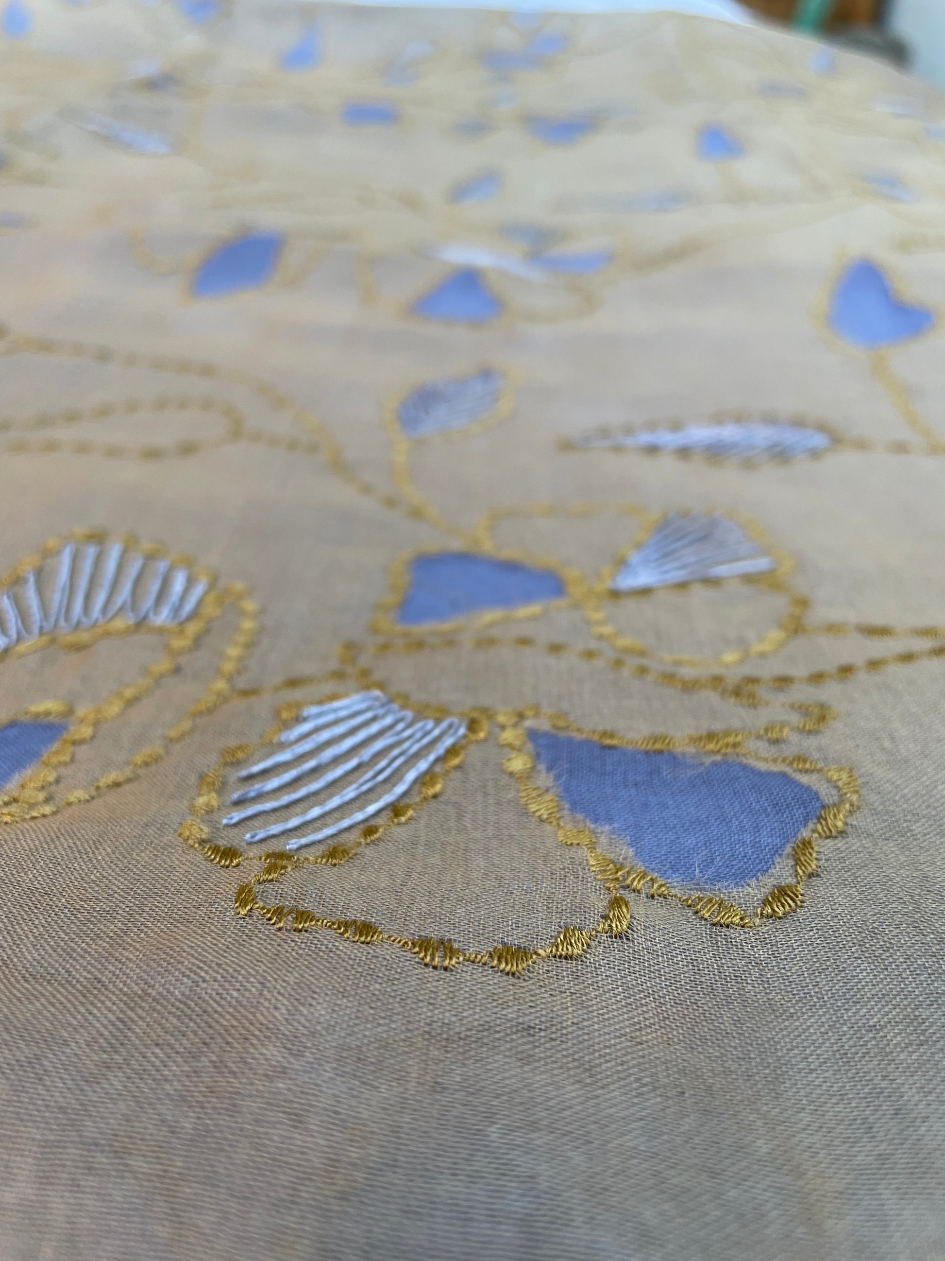 Stunning fabric with a stiff finish. Perfect for a gathered or A-line mid length skirt.