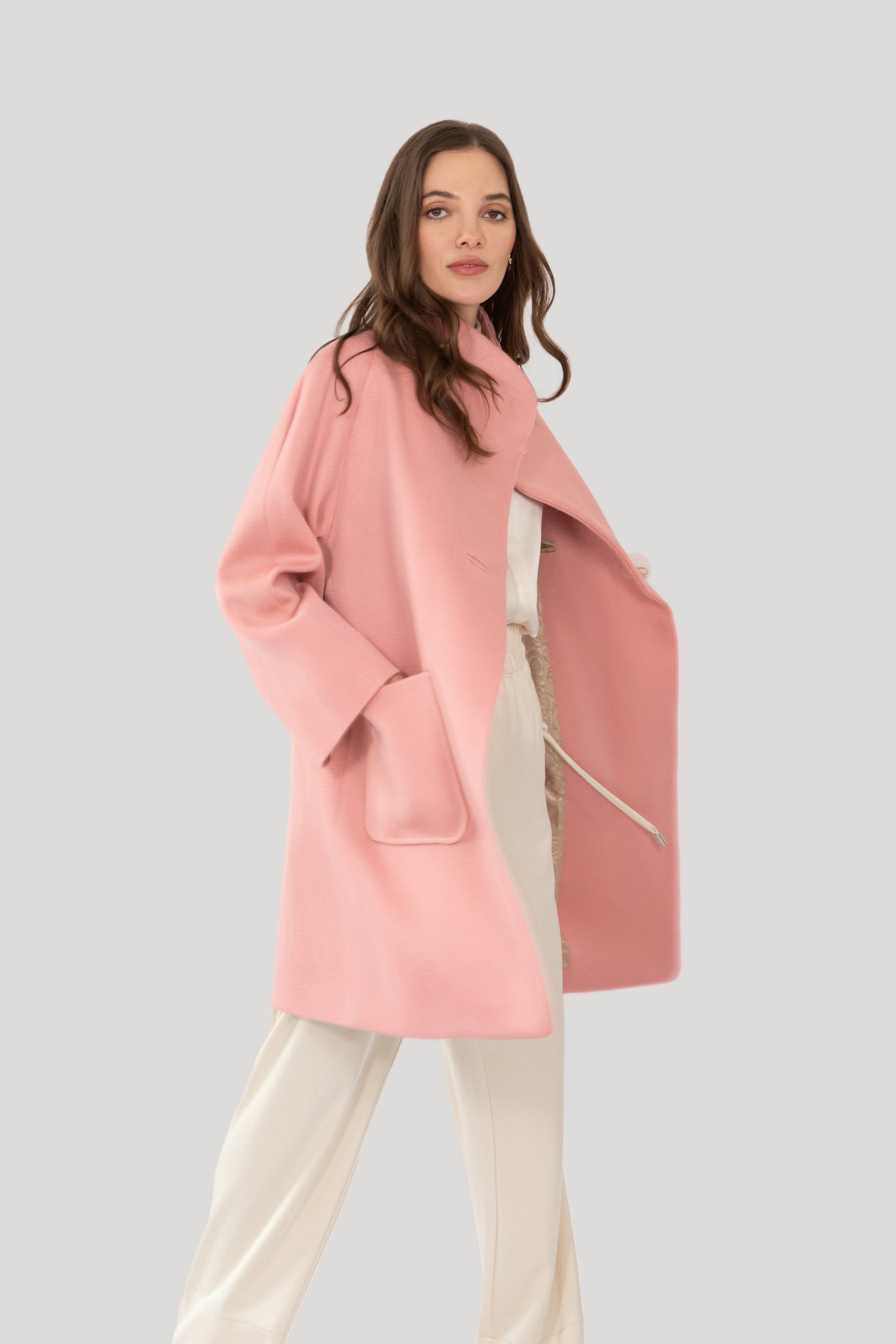 The colour sits somewhere between a delicate rose and a pale salmon pink and gives this Solena coat a distinct 1960s feel. It could easily be the perfect piece for a wedding! Although it would look equally great thrown over jeans..
