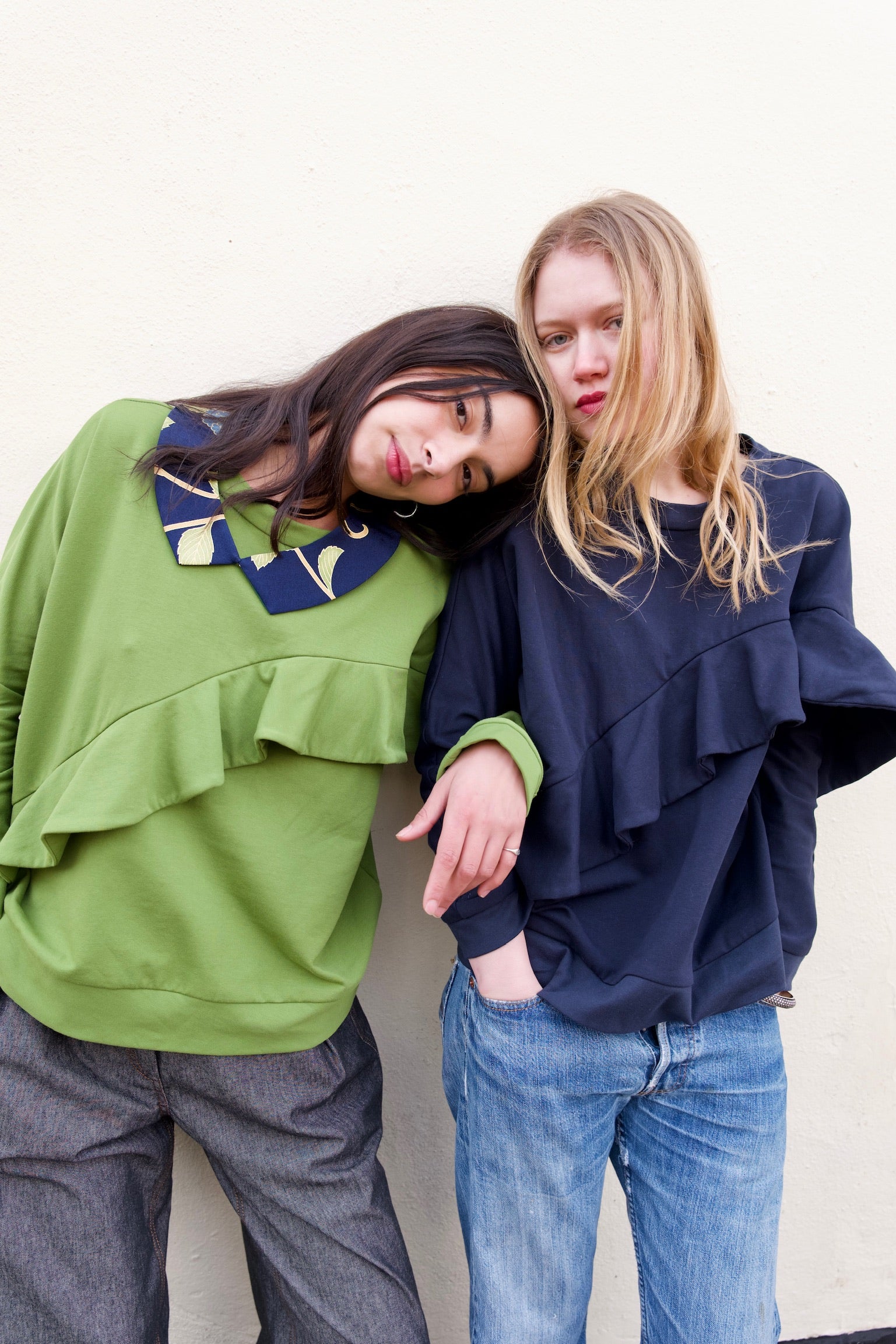 With a ruffle rising diagonally across the front and finishing on the left sleeve rather like a wave as its name suggests - this is not your average sweatshirt! With its relaxed fit and dolman sleeves, which narrow to the wrists it’s perfect to pop on after a yoga class. It looks equally great worn over a silk skirt on a summer evening when there is a slight chill in the air (or anything in between).
